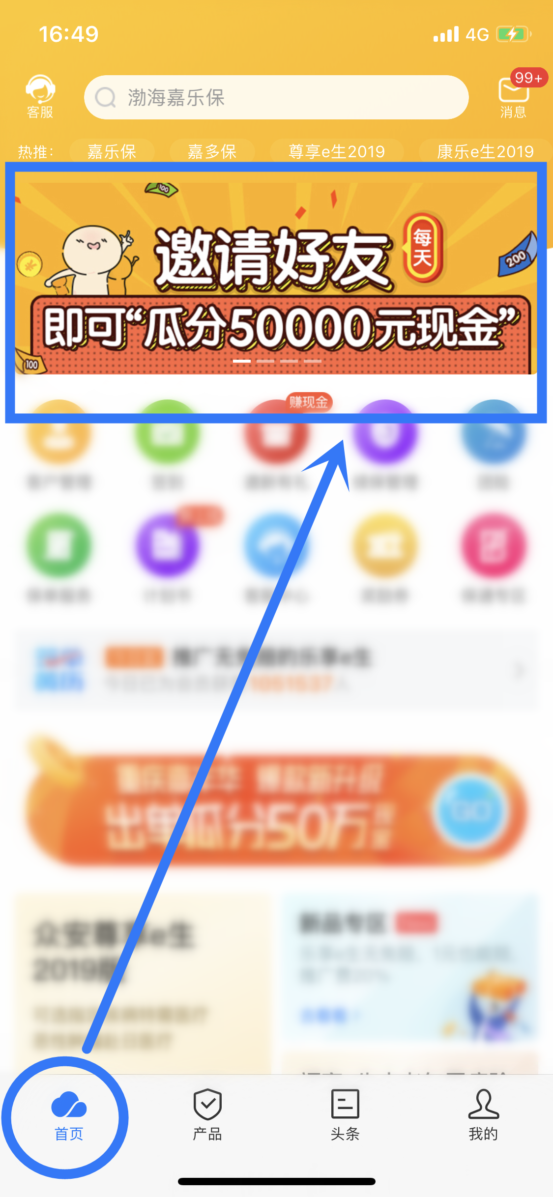 打开 i 云保 app,找到首页的活动广告图,点击进入。