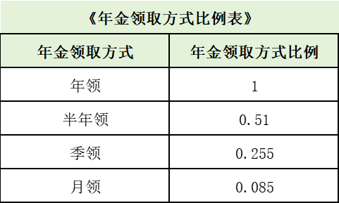 首次领取金额=基本保险金额×年金领取方式对应比例