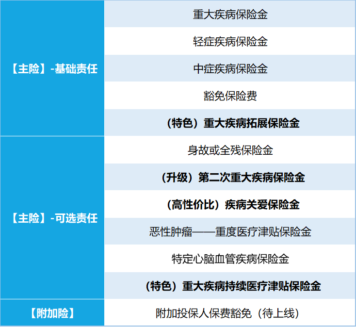 保障责任丰富且实用性强,可按照自身保障需求灵活附加。