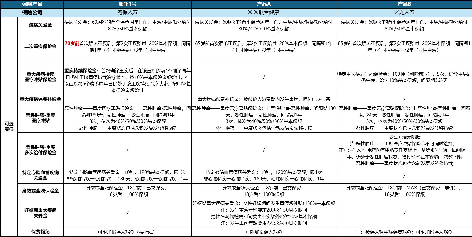 其实通过对比不难发现,哪吒1号可选责任上进行了精简,同时升级附加率高的可选责任,兼具创新责任,可选责任覆盖人群广,责任实用性强。