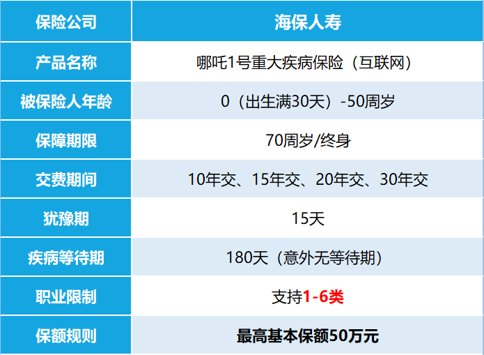 首先,承保年龄30天-50周岁,保障期限可选定期至70周岁/终身,交费期间支持10/15/20/30年交,其中保至70周岁不可选30年交.