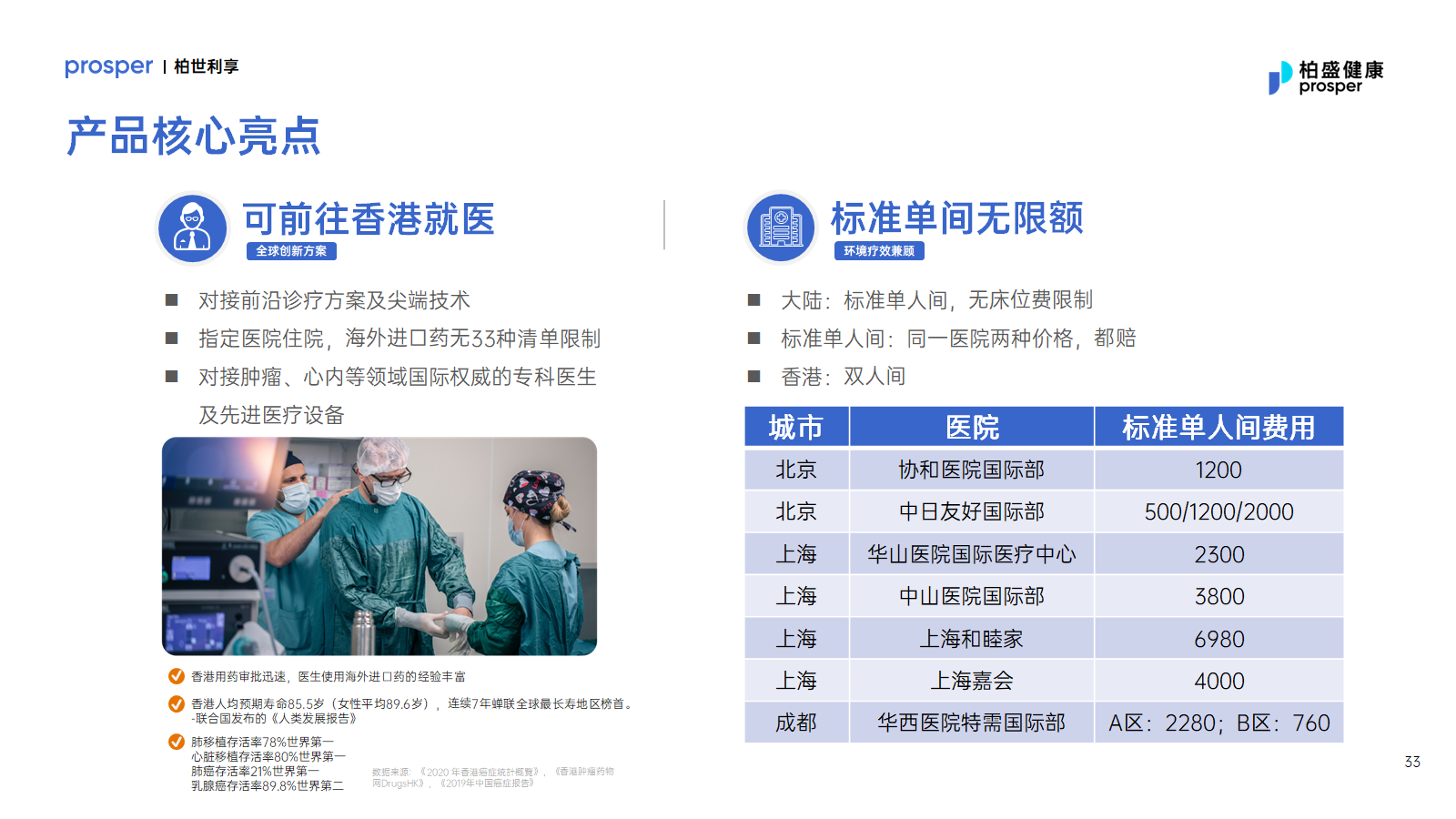 亦可使用香港和博鳌的33种海外进口药“临床急需进口药物”,如果在香港指定医院住院治疗,可突破33种限制,对齐所有欧美上市的药品;