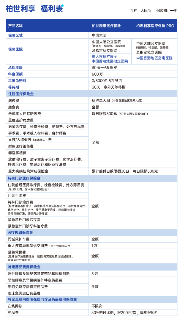 利宝战略旗舰款 · 柏世利享中高端医疗