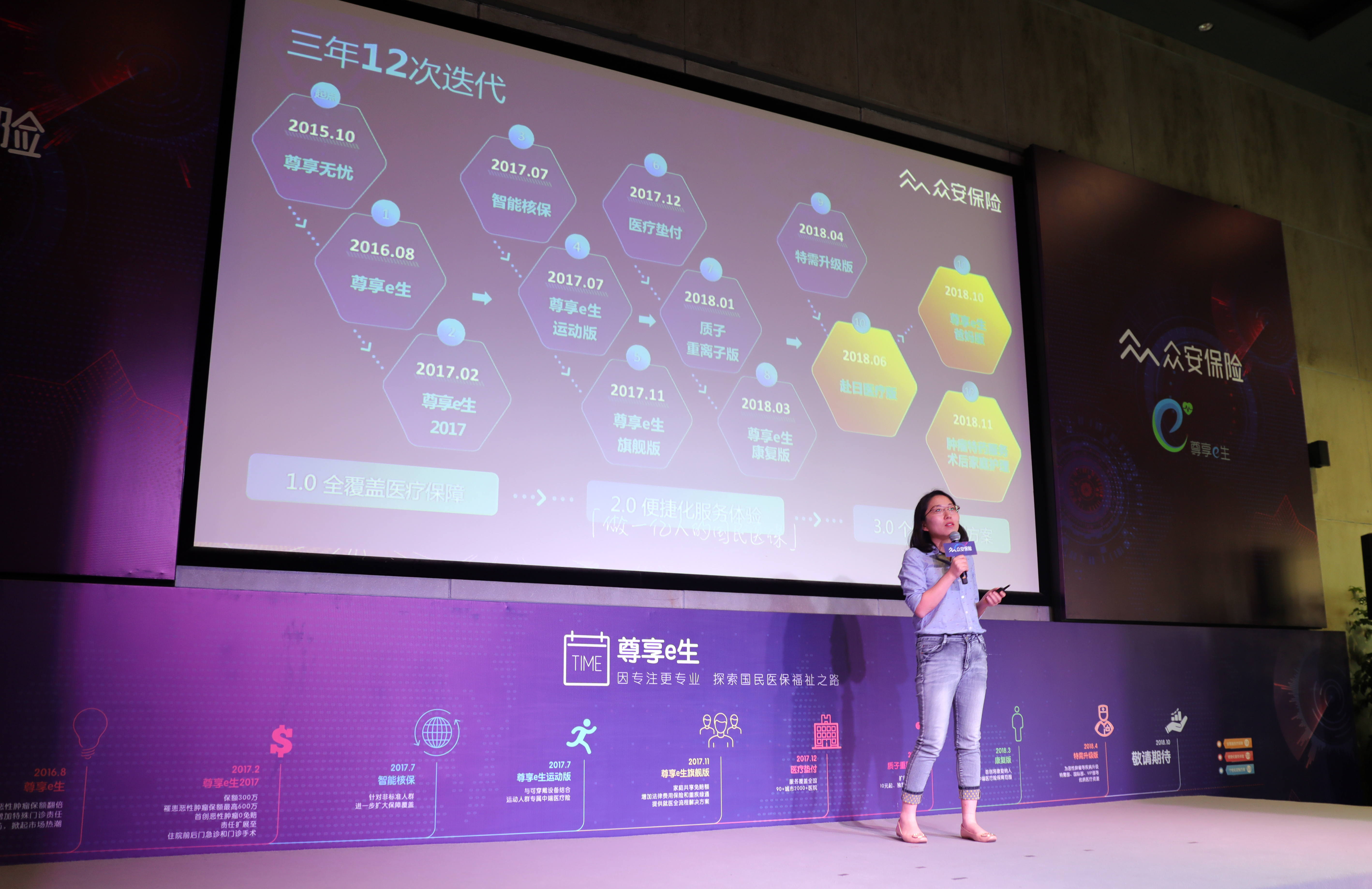 据众安健康产品总监孔庆坤女士介绍,从2015年推出百万医疗,众安三年进行了12次迭代,其实从一开始解决病不起的问题,到业界首先推出医疗垫付,也是那时候开始众安逐渐铺设医疗网络。我们希望能给客户提供一套完整的保障和服务,致力于提供消费者最需要的那一份医疗保障。其实现在市场上百万医疗的竞争已经非常激烈,反过来看一下,尊享e生已经有了200万的客户,超过60%的尊享e生客户,年龄都是在26-40岁之间。他们普遍是出于对健康和未来的焦虑,因此为自己或家人购买了尊享e生。因此这次推出的尊享e生爸妈版,是专门针对61-65岁的人群定向开放的,而且也只是尊享老客户的特权,众安希望把这个保障延伸到他们父母身上。比如说看一下产品形态还是200+200的结构,最高400万保额,两万以上的部分都是100%赔付,对于有社保的爸妈来说一年只需要1576元,而且作为尊享客户的专属福利,众安也是采取1+2模式,一个年轻的尊享客户可以为父母各购买一份,其实也是在控制风险的同时,尽量做到人性化。