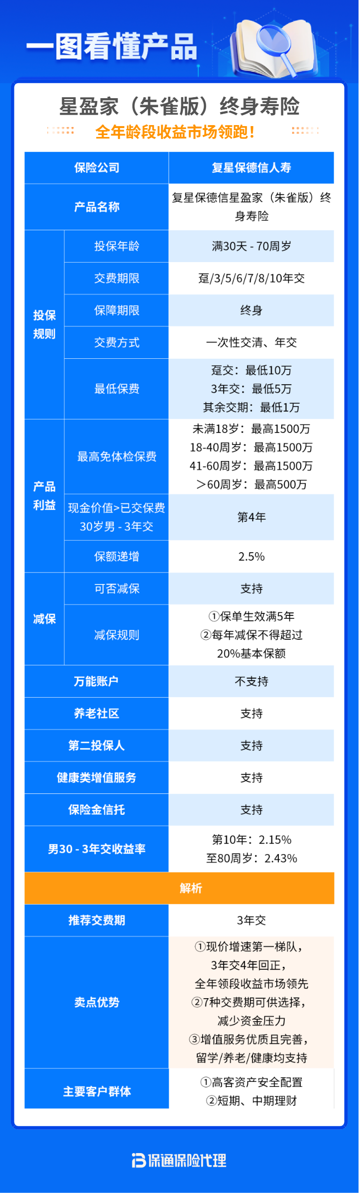 当下,想终身锁定2.5%预定利率,该投哪款增额终身?保通经过层层对比,为大家精挑细选出7款,各有特色和优势,减少大家研究做功课的时间。