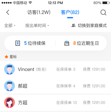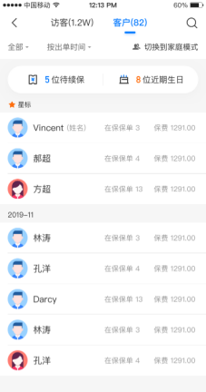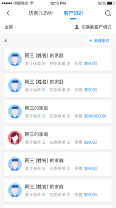 而点击【切换到家庭模式】后,您看到的就是客户家庭列表了。