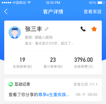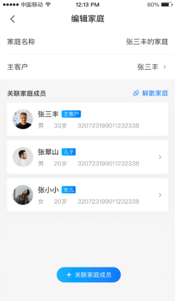 互为家庭关系的客户将自动关联,您可以以家庭为单位对客户进行管理。