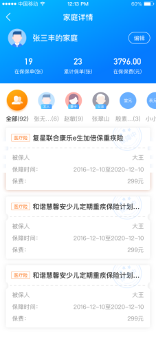 比如 A 作为投保人给 B 投保了一份尊享 e 生,我们就会默认为他们是一个家庭。如果 B 又作为投保人给 C 投了尊享 e 生,那么 C 也会被关联到这个家庭中,以此类推。