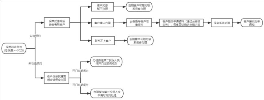 1、开门红期间(2021年1月1日至2021年3月31日),单张保单累计总保费≥30万元,在投保环节支持勾选“预约指定第二投保人”选项,保单犹豫期后我社客服人员将会与投保人联系协助办理。