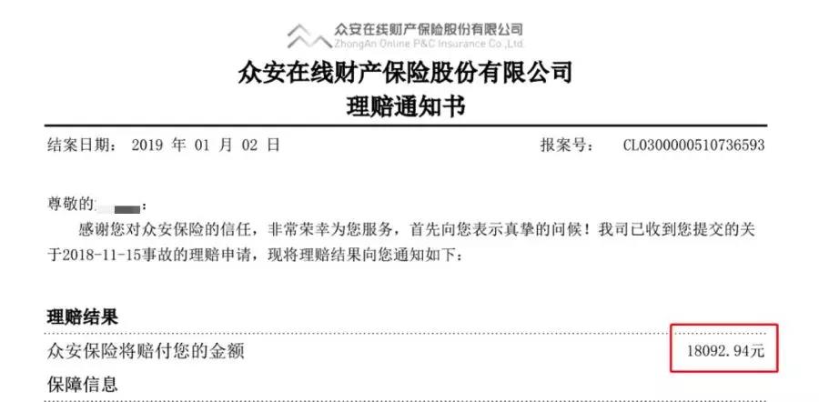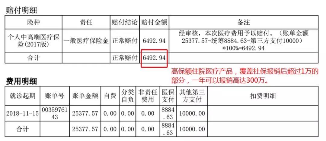 通过理赔通知书可以看出,总理赔金额为18092.94元,这比客户本人实际花销的医疗费还多了1600块钱。