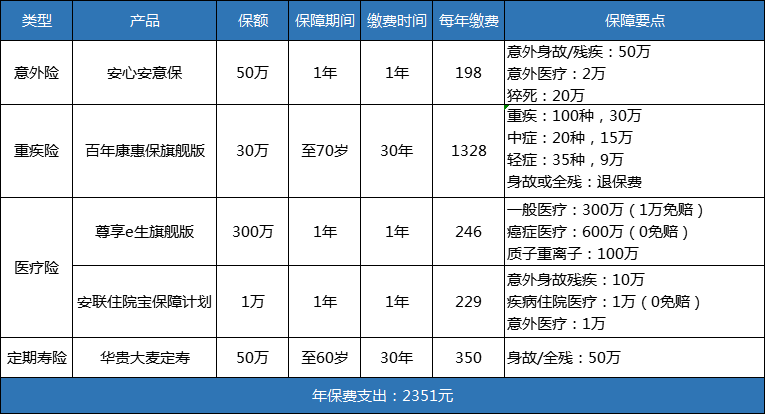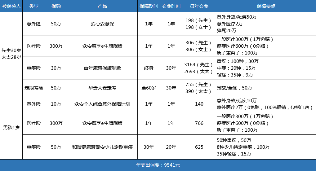 客户特点:年收入10万元,房贷30万元,孩子刚满1岁。