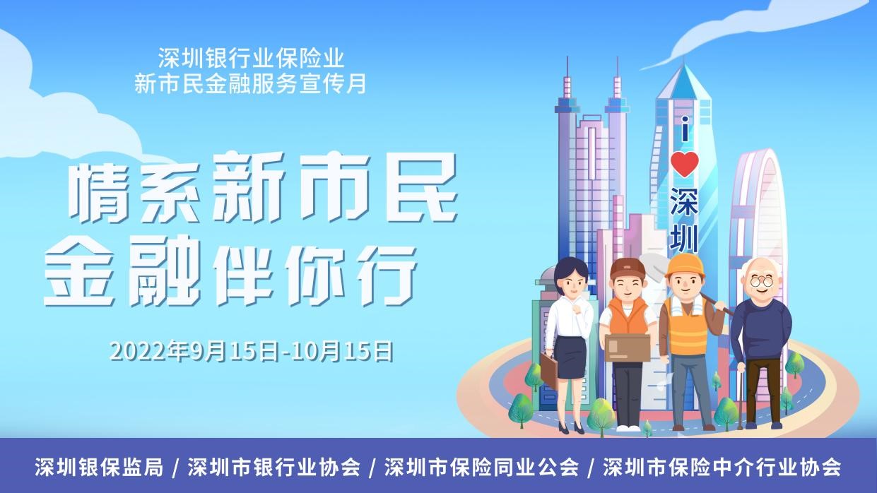 根据《深圳银保监局关于加强新市民金融服务的工作方案》,2022年9月15日至10月15日为深圳银行业保险业“新市民金融服务宣传月”,本次宣传月口号为“情系新市民 金融伴你行”。