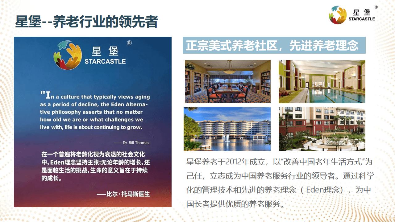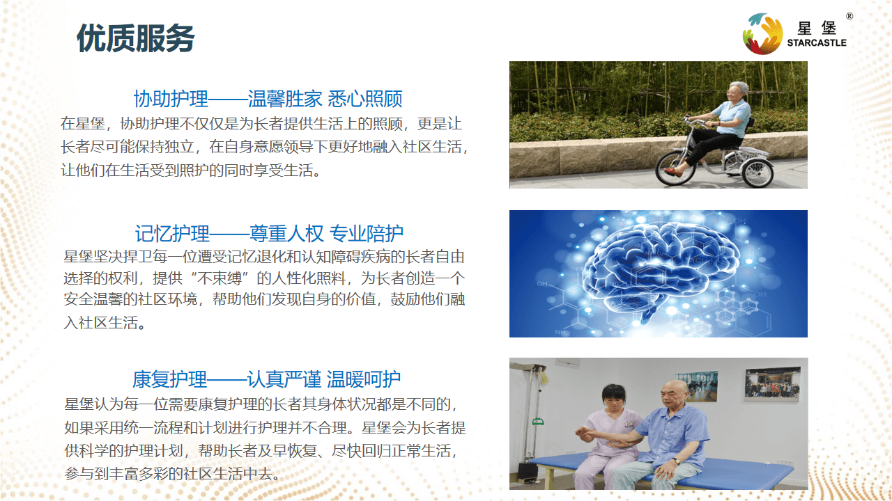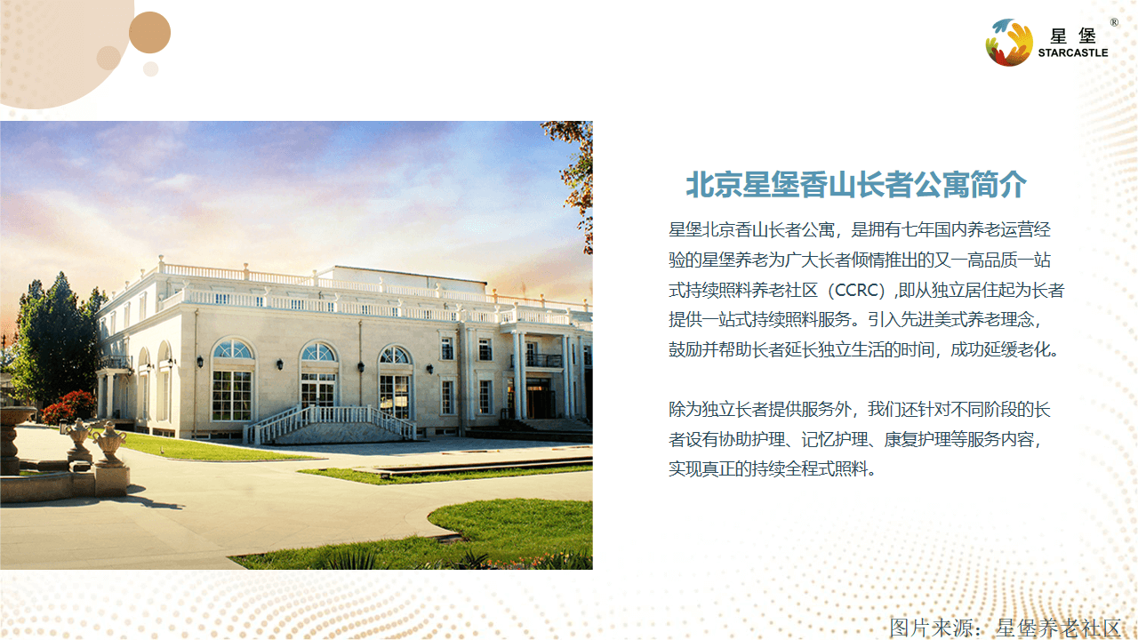 而在众多水平参差不齐的养老社区中,由复星集团打造的星堡高端养老社区,凭借先进的养老理念、一流的环境设施、资深的运营团队与专业的服务品质,获得了无数客户的关注与认可。
