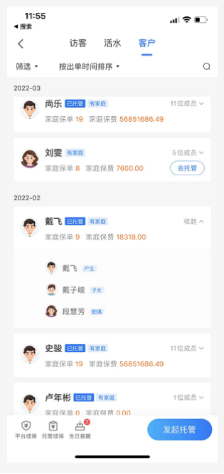 - 客户列表的卡片展示维度不变,依然展示所有客户(含户主和家庭成员),合并现有的客户家庭页面进入客户页面
