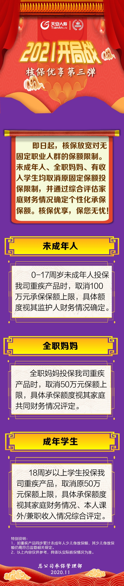 天安人寿三弹连发:免体检保额升高、核保政策放宽、对无固定职业人群的保额限制放宽……