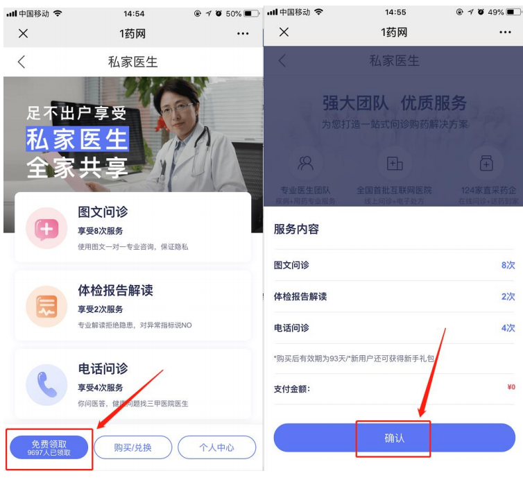 1. 进入问诊卡领取页面后,点击“免费领取“并完成登录