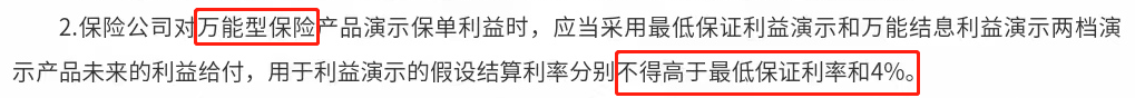 之前万能账户演示利率分为高(6%)、中(4.5%)、低(保底利率)三档,6 月 30 日起,将只剩下两档,一档是最低保底利率,一档不得超过 4%。