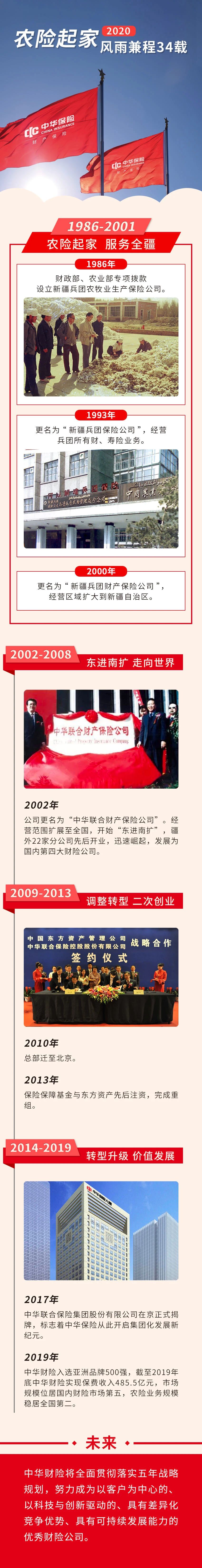 截至2019年12月底,中华财险注册资本金为146.4亿元人民币,公司偿付能力充足率为263%。2019年,中华财险实现保费收入485.52亿元,市场规模位居国内财险市场第五,农险业务规模稳居全国第二。惠誉国际评级机构连续四年授予公司“A-”财务实力评级,长期展望为稳定。