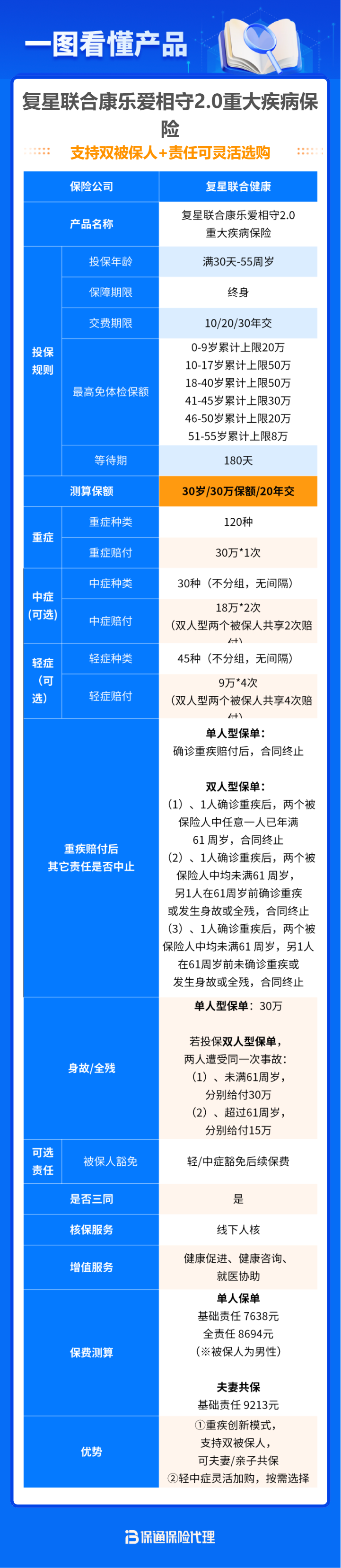 二,保障简单、费率极致:只有简单的重疾、轻症、中症、轻中症豁免和身故全残保障,其他统统没有,降低选择难度的同时,也压缩了价格,且双人一起买,费率优势更加突出。