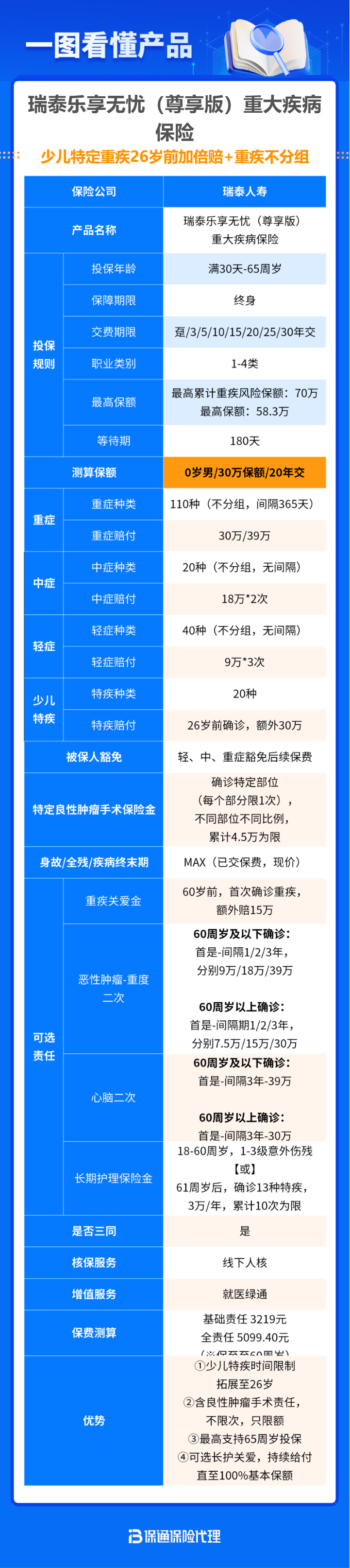 瑞泰人寿也是一家中外合资公司——高品质保险公司的代名词,背景优秀、经营稳健,瑞泰乐享无忧(尊享版)是一款不分组、2次赔重疾险,相较升级前,基本保障内容没有发生很大变化,产品优势主要有6点: