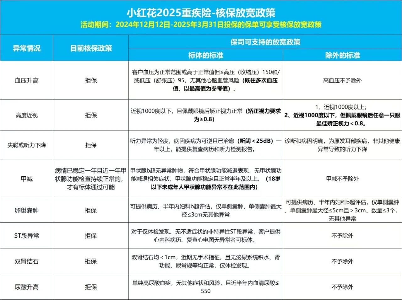 对身体健康有异常的客户来说,这是个上车的好时机,原来除外的,现在满足条件有机会标体,原来拒保的,现在有机会买入啦!