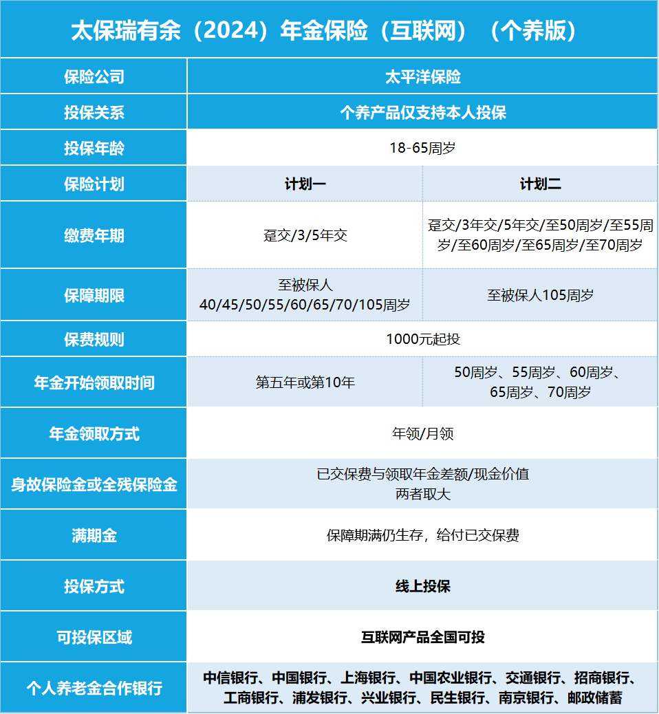 推荐产品:太保瑞有余(2024)年金保险(互联网)(个养版)