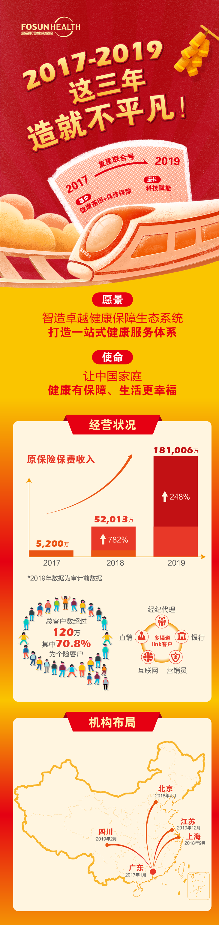 复星联合健康成立于2017年,注册资本为人民币5亿元,注册地是广州市,目前分支机构分布在广州、佛山、东莞、江门、中山、惠州、北京、上海、成都、南京。