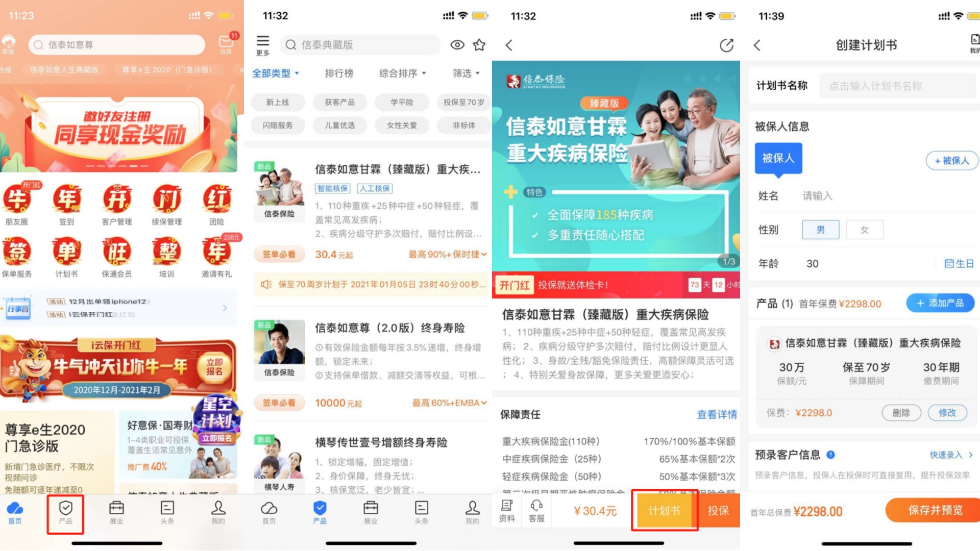 路径2:i云保app首页-底部【产品】菜单-产品详情页-计划书