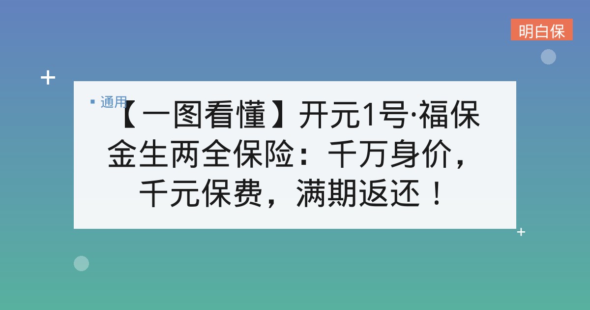 【一图看懂】开元1号·福保金生两全保险:千万身价,千元保费,满期返还!
