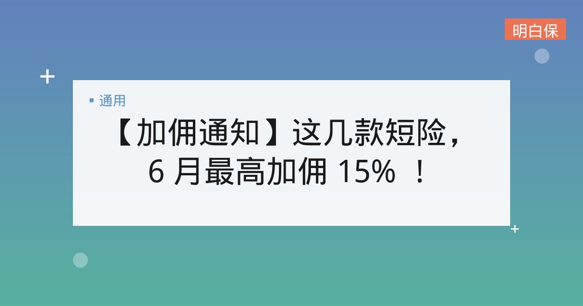 【加佣通知】这几款短险,6 月最高加佣 15% !