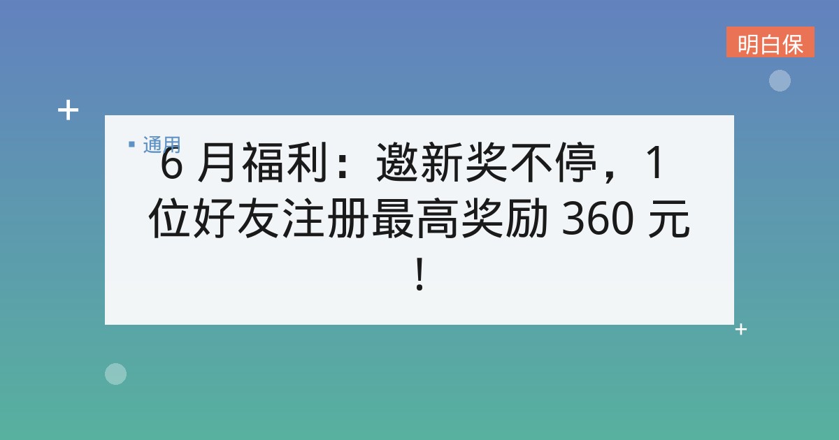 6 月福利:邀新奖不停,1 位好友注册最高奖励 360 元!