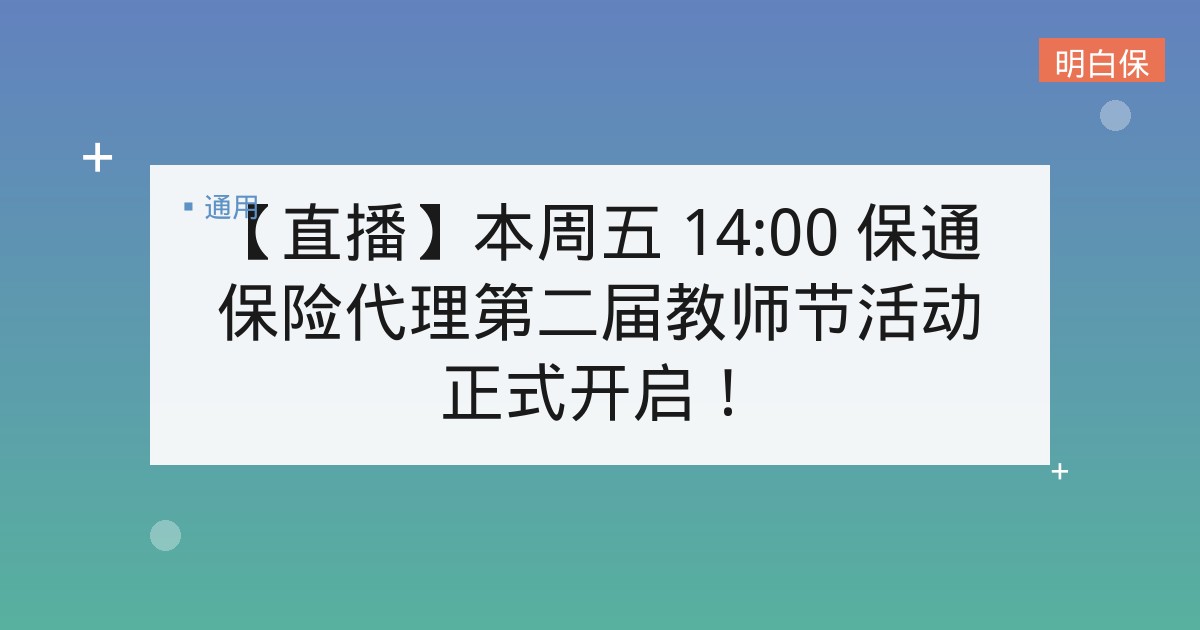 【直播】本周五 14:00 保通保险代理第二届教师节活动正式开启!