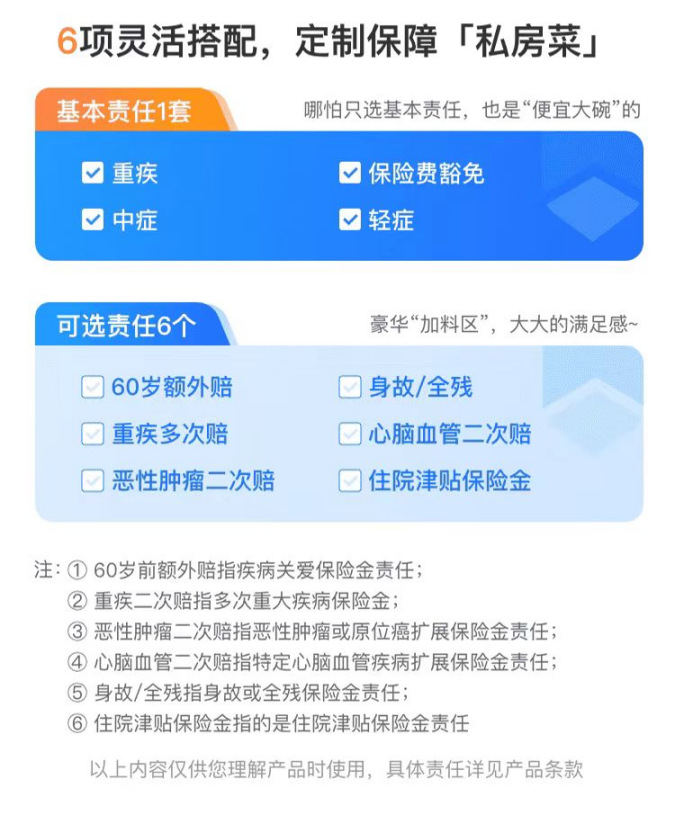 房贷压力大的朋友,可以选上疾病关爱金:60周岁的首个保单周年日前,首次得重疾、中症、轻症,分别额外赔80%、30%、15%的基本保额,提升家庭责任最重期的保障杠杆。