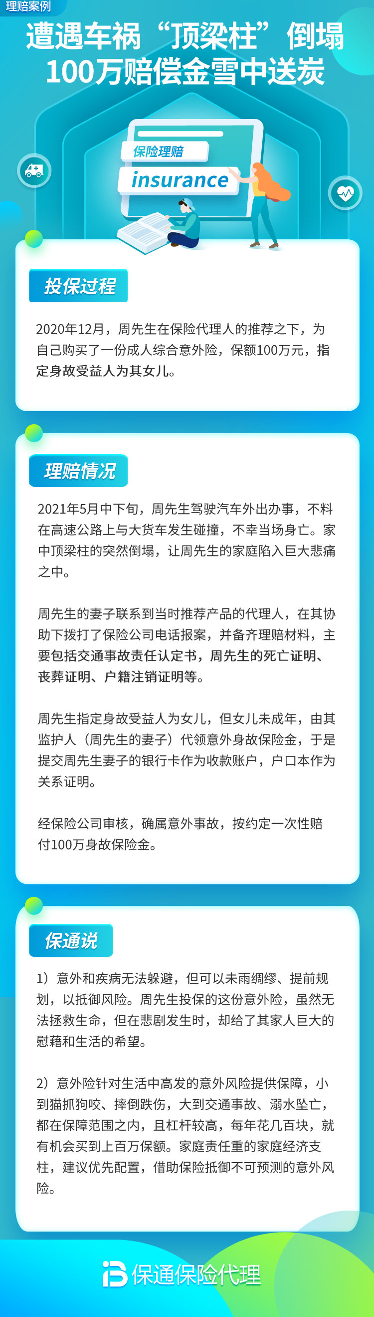 “顶梁柱”遭遇车祸,100万理赔金雪中送炭