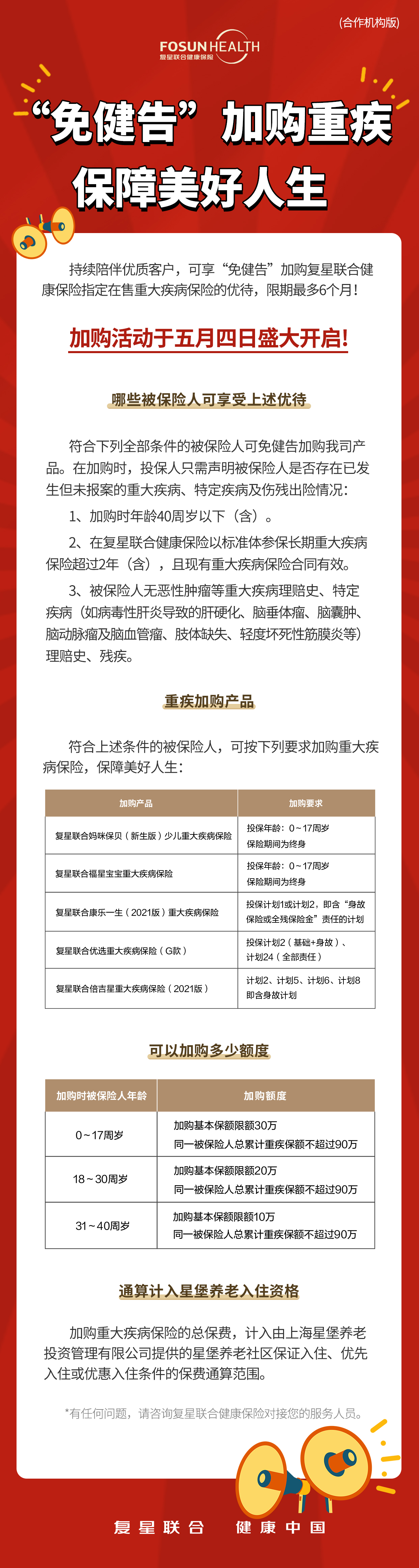时间窗口:到今年10月31号。注意,从你原来保单生效日起算,加购最晚不能超过6个月。比如你老保单是4月买的,那最晚10月前得办完加购。别拖,一拖就忘。