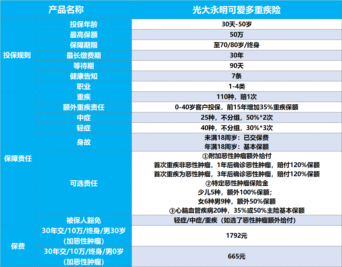 如果你预算非常充足,直接上终身多次赔付的重疾险,保障更全面,那当然更好。但如果你预算卡得比较死,又想保障有重点,“可爱多”这种“基础保障+重点突破”的思路,就挺聪明。