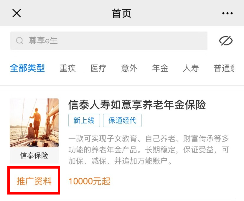 推广产品直达产品库。根据我的经验,产品资料获取的便捷度直接影响出单效率。很多平台的产品PDF条款、计划书、宣传页散落在不同地方,而这里声称可以一键获取“推广资料包”。