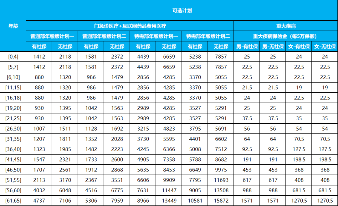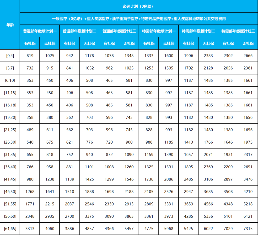升级了这么多,大家最关心的肯定是价格。我仔细看了下费率表,结论是:比百万医疗版贵,但在中端医疗险里,性价比确实能打。