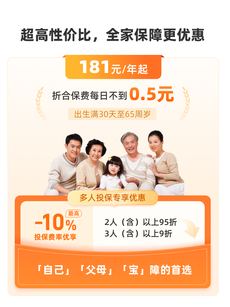 最高400万保额,20年保证续保,适合全家配置,181元起
