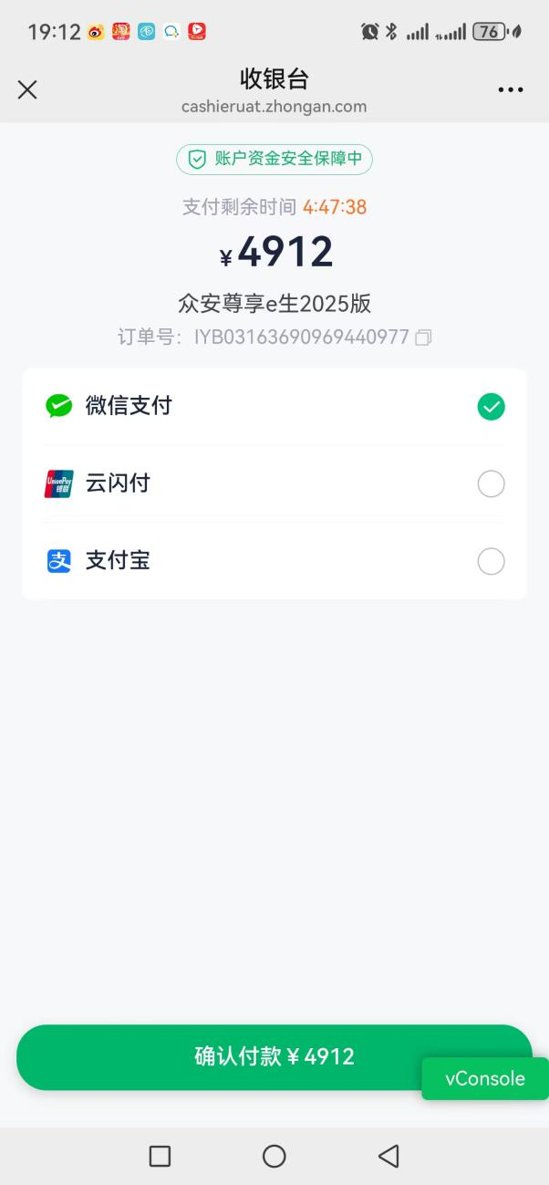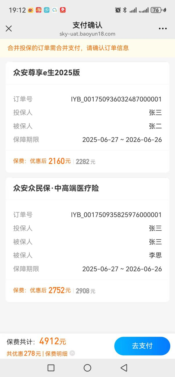 第四步:合并支付,完成投保