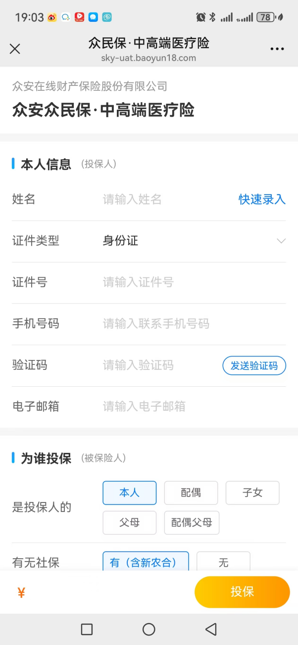 过几天,你想给自己投保“尊享e生2025版”。重新进入投保页面填写信息。