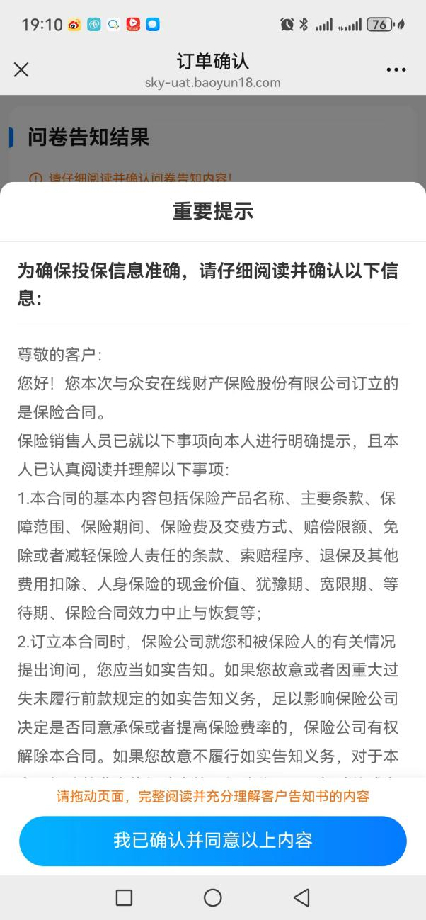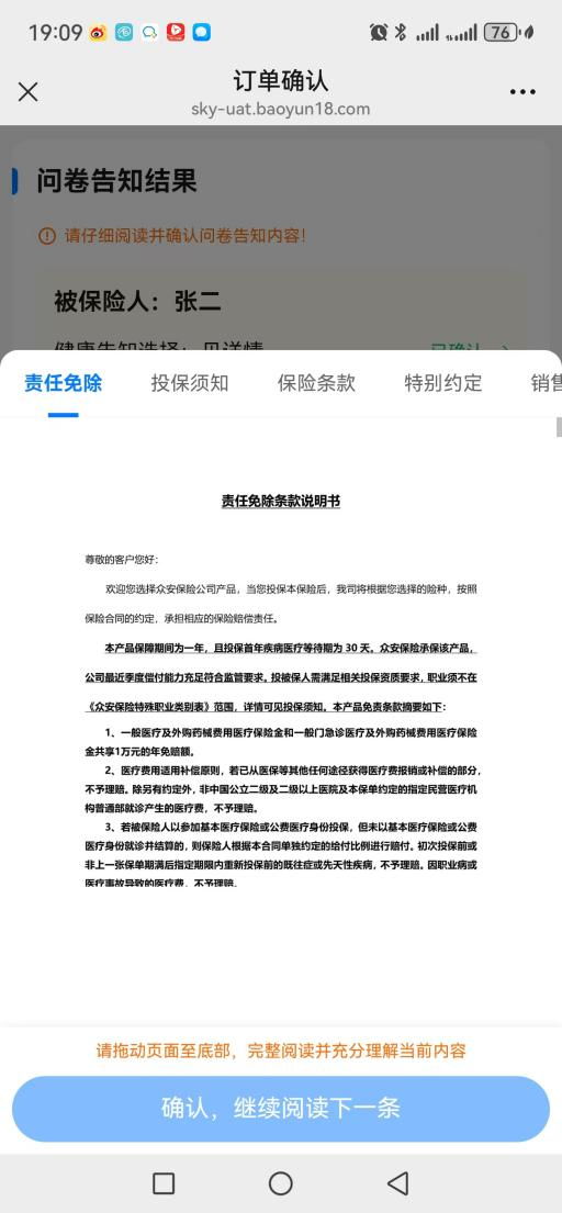 接着走流程,确认健康告知、阅读投保须知等文件。