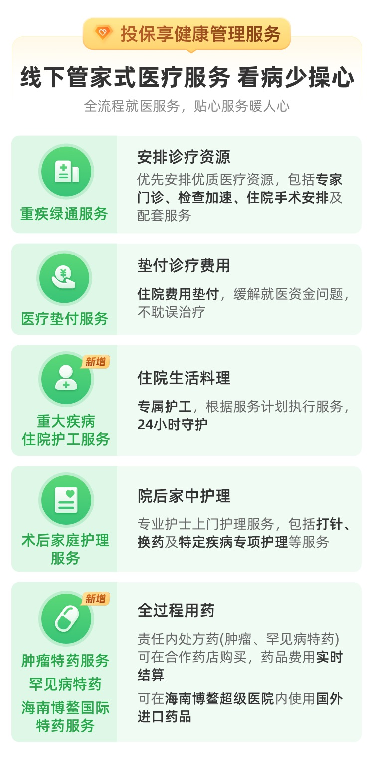 尊享e生的增值服务一直是强项,2023版扩充到了12项。真正核心且实用的还是那几样:住院垫付、重疾绿通、肿瘤特药服务。这些服务在关键时刻能解决“没钱看病”和“找不到专家/床位”的痛点,价值有时超过保险金本身。