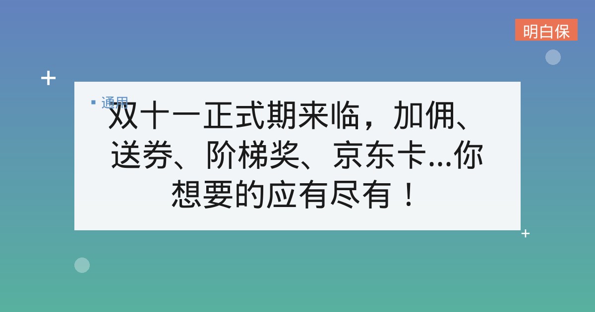 双十一的加佣、送券、阶梯奖,是市场给予我们辛勤工作的额外回馈,值得我们去积极争取。但越是热闹的时刻,我们越要记得自己作为风险规划师的专业身份。
