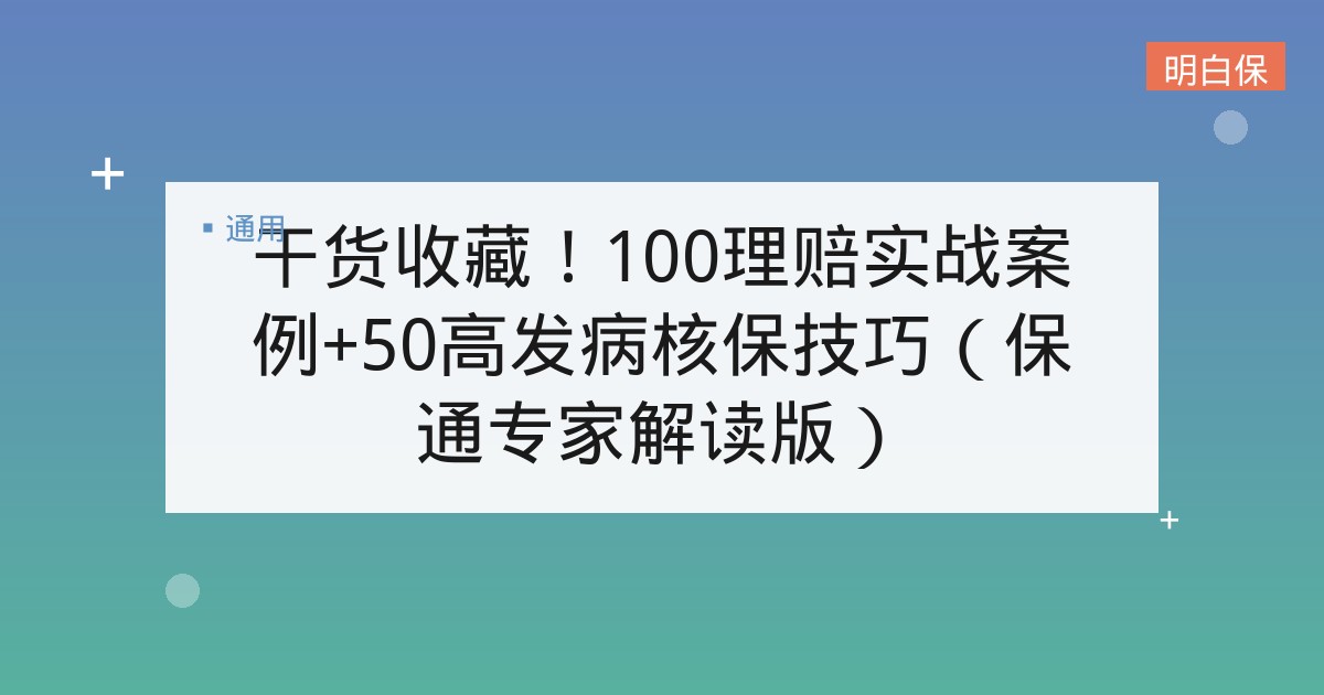 干货收藏!100理赔实战案例+50高发病核保技巧(保通专家解读版) 📅 2025年11月13日 👁 21 次浏览 📁 保险理赔, 投保指南, 核保攻略, 理赔指南 体检查出××病,还能买什么保险? 投保时未告知“焦虑状态”,得肺癌后拒赔合理吗? …… 保通理赔/核保专家独家解读 <<100个理赔/拒赔实战案例+50个高发病核保技巧>> 助你快速通关保险理赔/核保 ?点击这里,一键查收? 📚 相关阅读推荐 👉 哪吒1号限时放宽核保政策 👉 开门红 | 10家保司限时放宽核保政策,错过再等一年 👉 非标人群的保险指南——亚健康状态下的医疗保障选择 相关推荐›【活动】10000 积分,征集你身边的真实尊享 e 生理赔故事›“顶梁柱”遭遇车祸,100万理赔金雪中送炭›续保时未如实告知,拒赔合理吗?›真实案例:孩子患癌住院,百万医疗险赔付16次›保险理赔哪家好?40份理赔年报为你揭秘 标签: 投保, 核保, 理赔