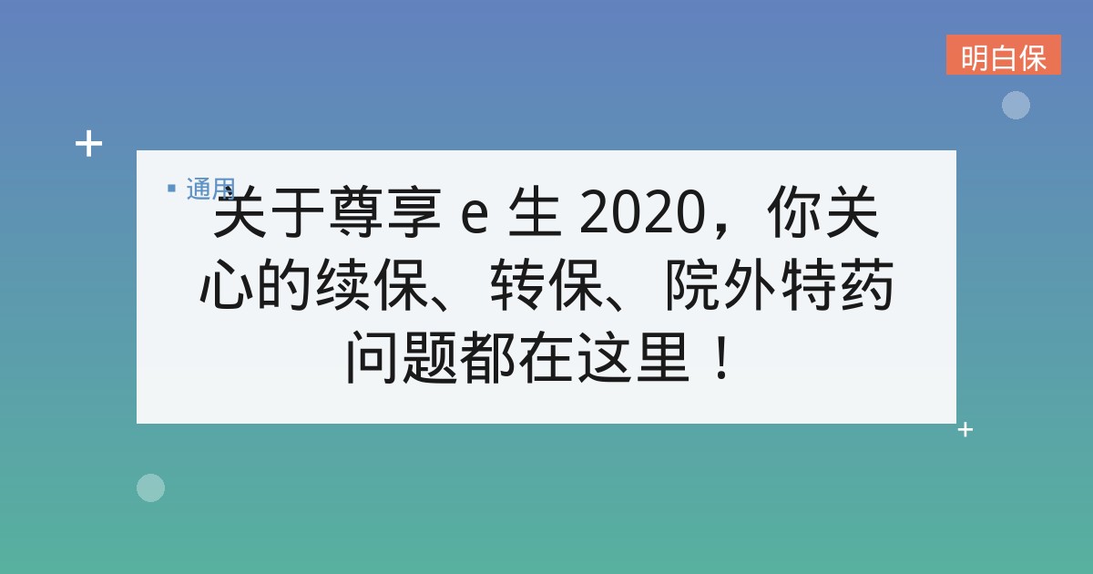 关于尊享 e 生 2020,你关心的续保、转保、院外特药问题都在这里!