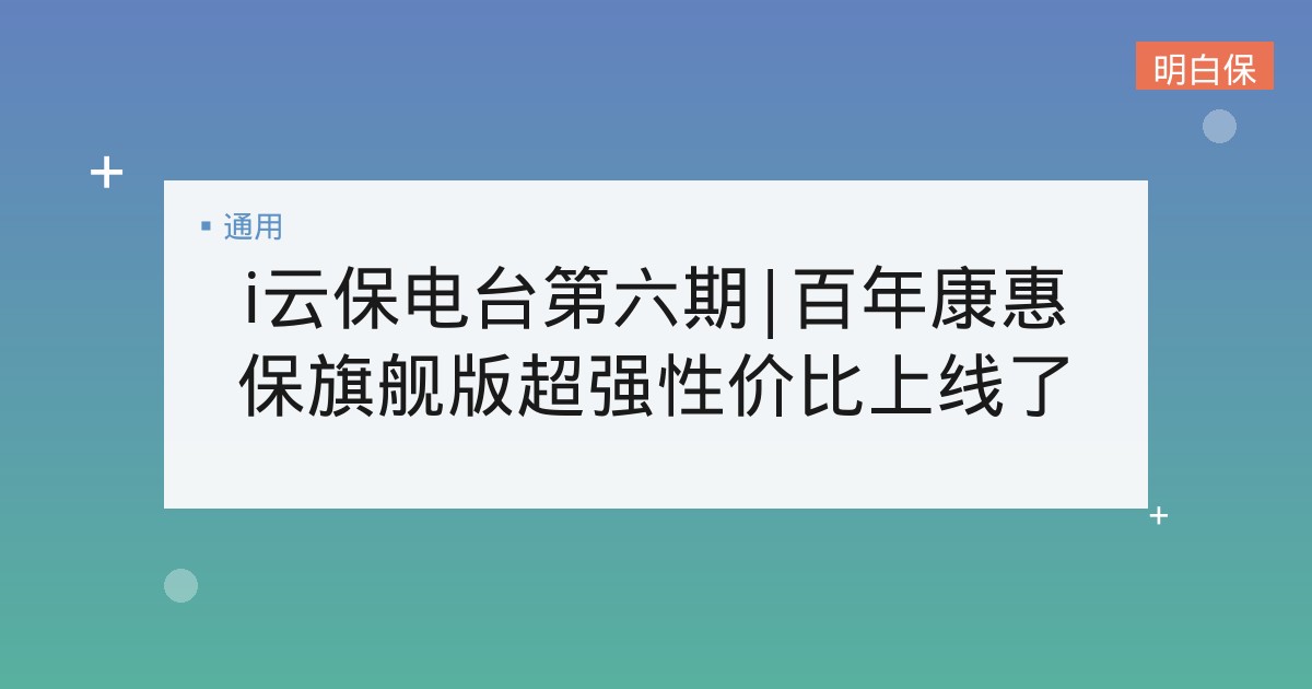标题:i云保电台第六期|百年康惠保旗舰版超强性价比上线了