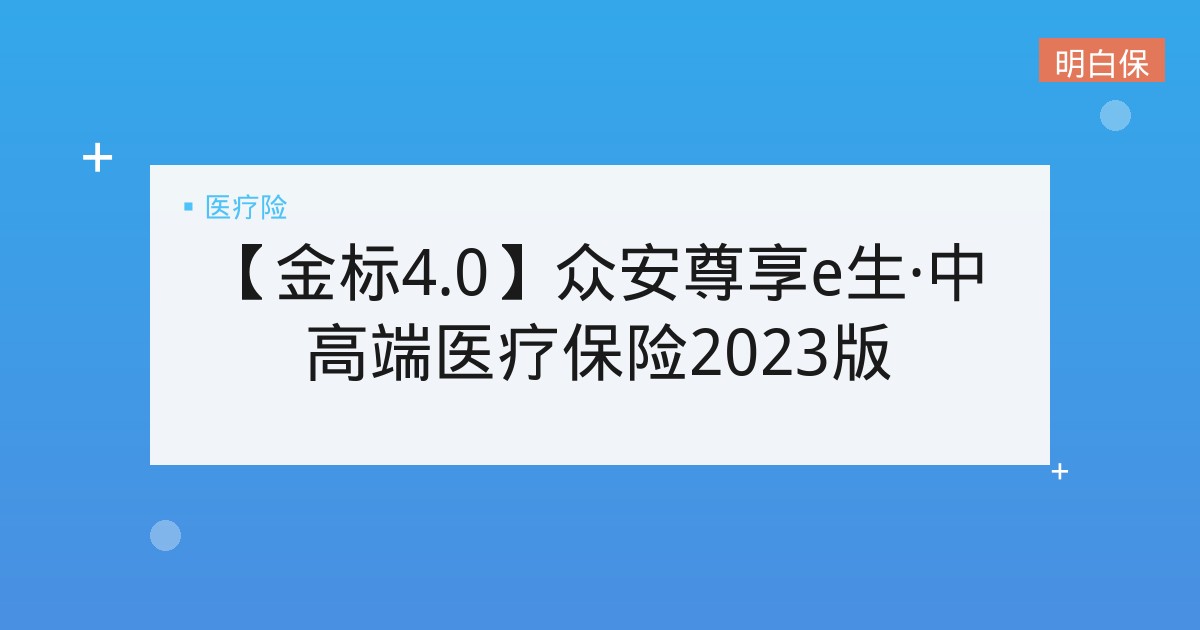 【金标4.0】众安尊享e生·中高端医疗保险2023版:你的“医疗自由”进阶之选