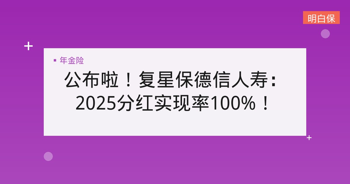 先同步大家一个好消息:2024年大家火热推广的星福家、近期热卖的星福家虎啸版以及青鸾版,其承保公司复星保德信披露了今年的分红实现率,目前在售的这两款产品2025年度的分红实现率都是100%!!