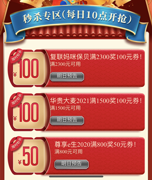 1、整 10 点进入【领券中心】,秒杀限量大额券。